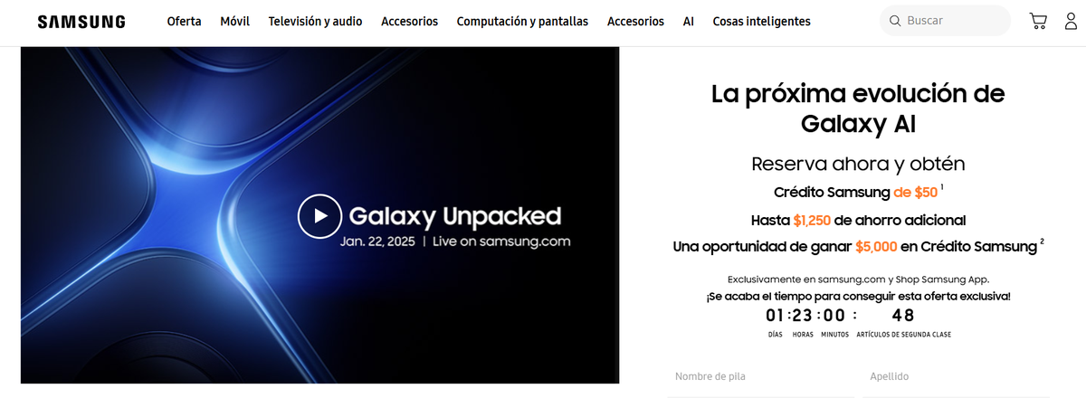 Por otro lado, si vives en Estados Unidos tendrás distintos beneficios extras, tal como refleja Samsung en su sitio oficial. Por ejemplo, al reservar el Galaxy S25, podrás obtener un descuento de 50 dólares al momento de comprarlo. Si te registras, también tendrás un descuento de 1,250 dólares en toda la tienda. Además, la empresa realizará un sorteo de 5,000 dólares en ‘créditos Samsung’.