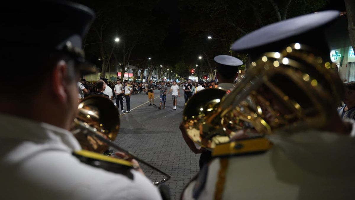 La banda de la Policía de Mendoza sumó su aporte musical a la Vía Blanca de las reinas.
