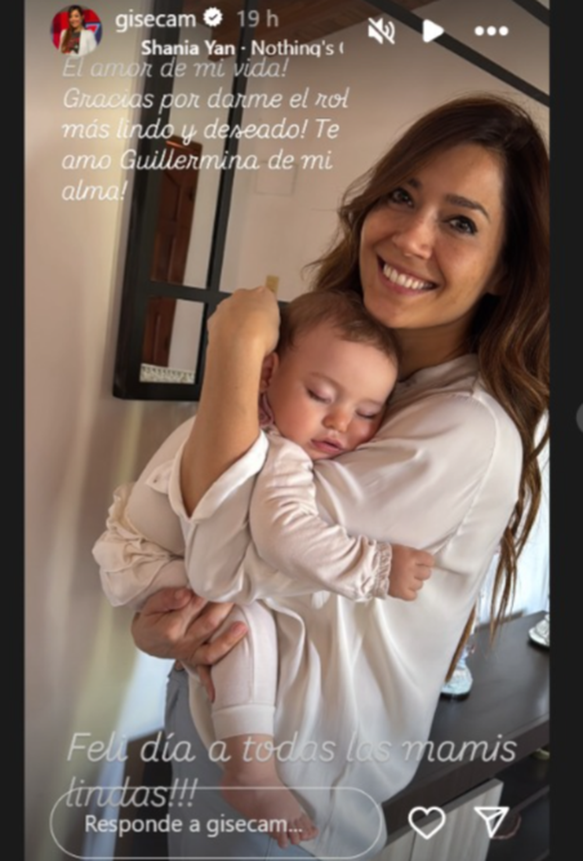 "El amor de mi vida! Gracias por darme el rol más lindo y deseado! Te amo Guillermina de mi alma!", escribió Gisela Campos en una de sus historias para acompañar una tierna foto con su beba en brazos dormida. Y las reacciones de sus más de 75.000 seguidores en Instagram no tardaron en llegar.