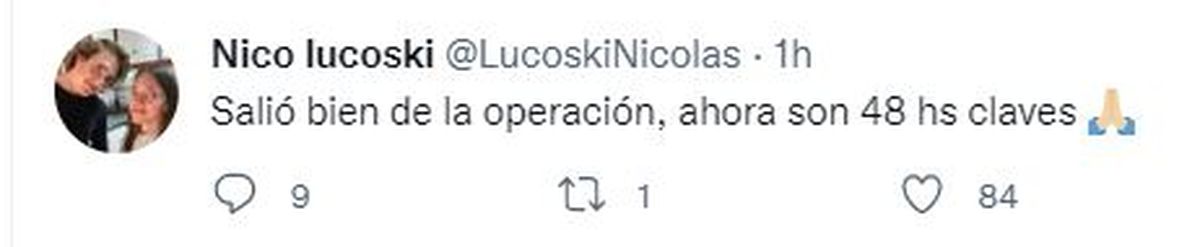 Las intervenciones salieron bien, y en 10 días de estar en sala común, ella podría estar comenzado la rehabilitación. Así lo expresó a UNO Nicolás Lucoski al término de la operación de su hermana.