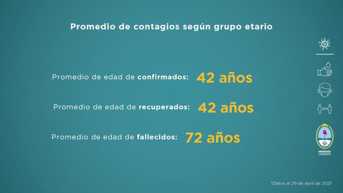 La franja de los más jóvenes continúa siendo el grupo etario que más contagios registra. Por lo general, este sector transita la enfermedad con síntomas leves. El promedio de edad de recuperados es de 42 años, de fallecidos 72 años y de confirmados 42 años.