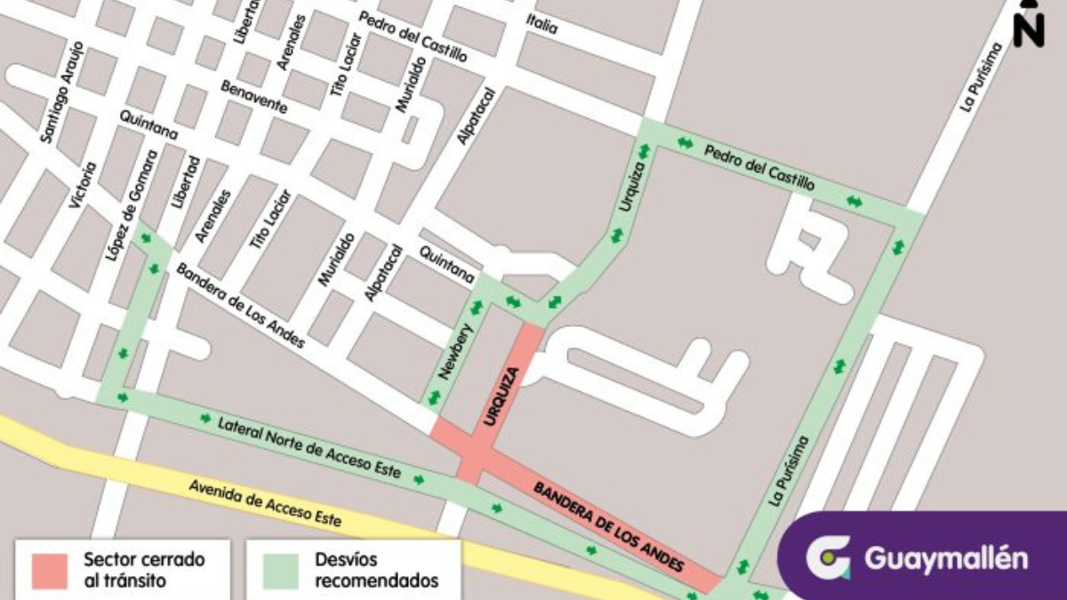 El municipio recomendó que para quienes transiten de oeste a este por Bandera de Los Andes, deberán doblar por la calle Libertad y continuar por la Lateral Norte de Acceso Este. Se habilitó una alternativa en el tramo que va desde Urquiza hacia La Purísima, y que atraviesa el Parque del Acceso.
