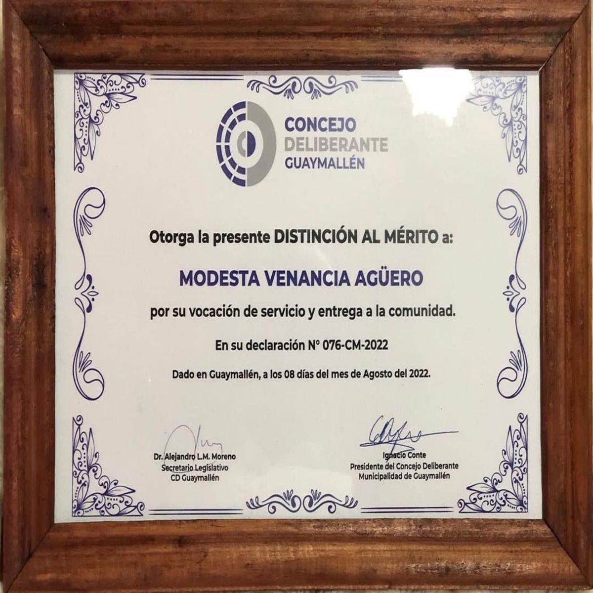 Modesta Venancia Agüero nació en 1929 y dicen los que la conocen que a los 14 años empezó a notar que era una persona diferente. En efecto, el Concejo Deliberante de Guaymallén acaba de otorgarle una distinción al mérito "por su vocación de servicio y entrega a la comunidad". Su actividad, claro, no es nada común.