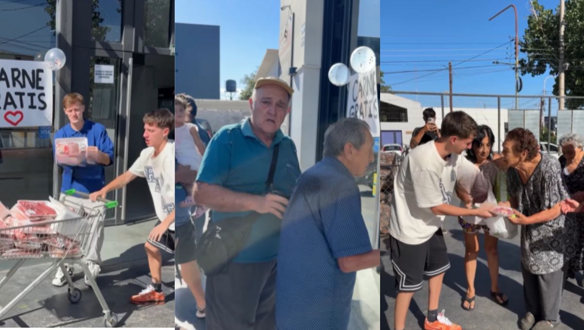 En el video publicado en las redes de ambos influencers, y en los que muchas personas los felicitaron, se puede ver como la mayoría de los que asistieron a recibir un poco de carne de regalo eran más que nada jubilados.