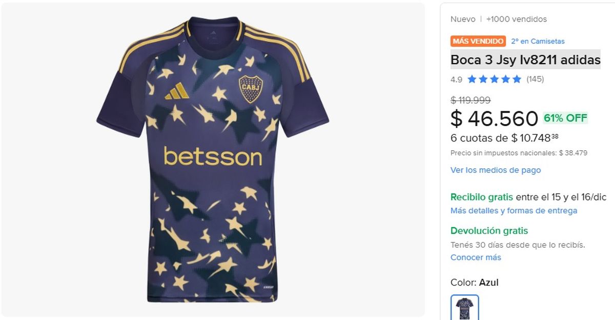 No solo las camisetas de la selección tienen grandes ofertas, las camisetas de Boca y River también se encuentran a un 61% de descuento. Por $ 45.600 (61% de descuento) con envío sin costo, el uniforme oficial de Boca Juniors.