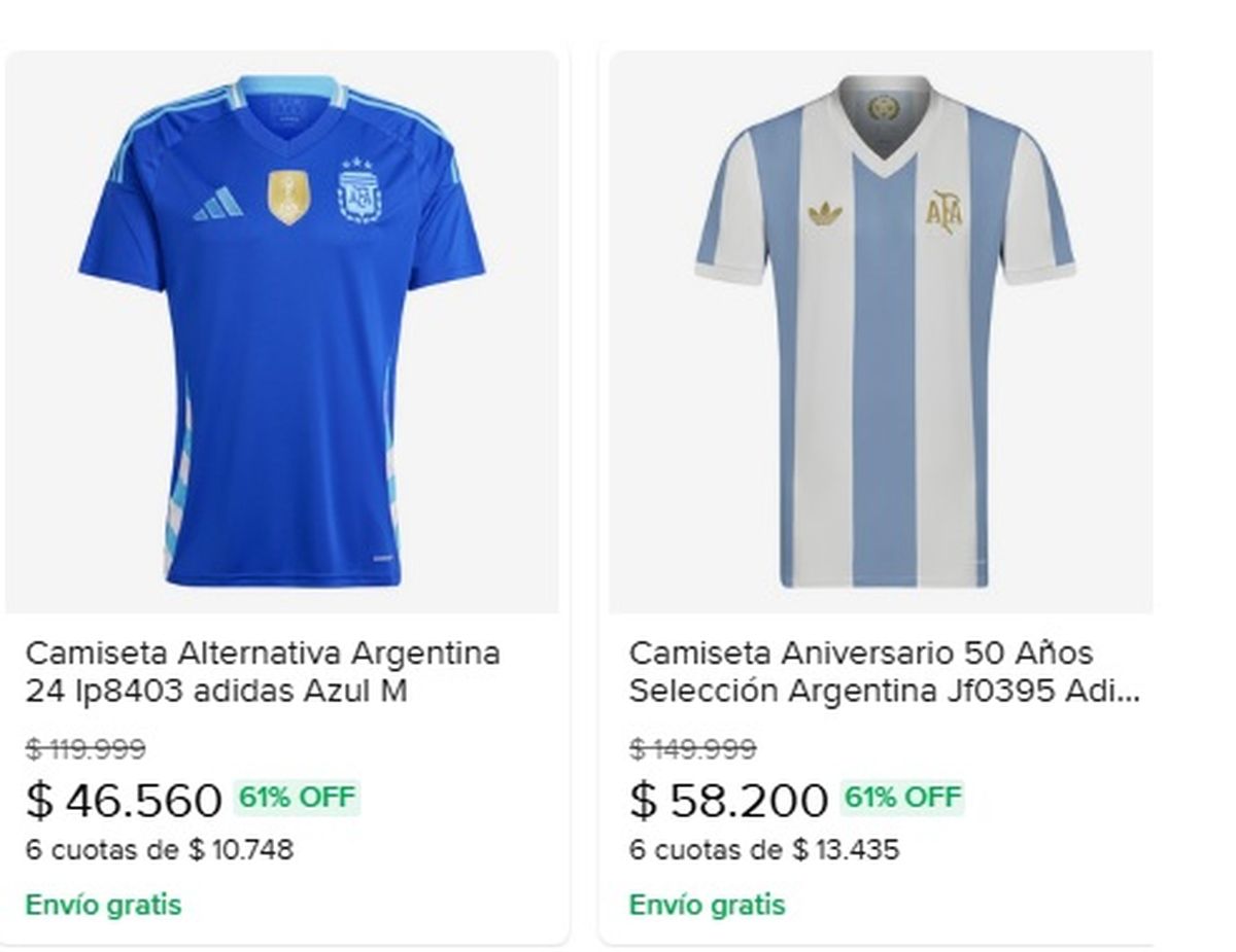 Muchas personas esperan que las camisetas de la selección se encuentren en descuento para poder comprarlas. En esta ocasión, en la tienda oficial de Adidas en Mercado Libre, las remeras se encuentran a un 61% off.