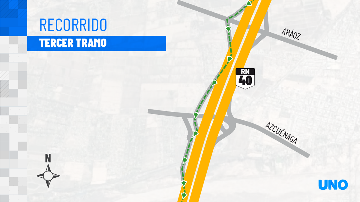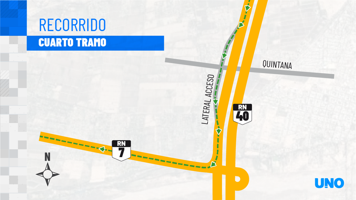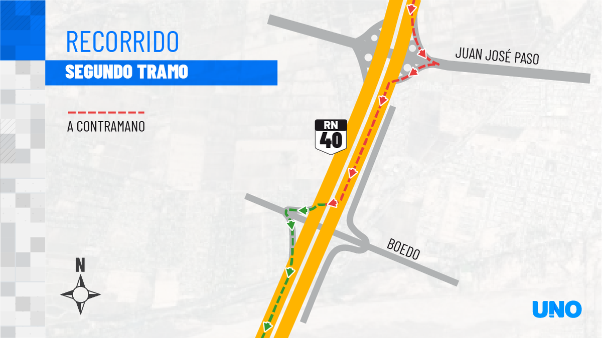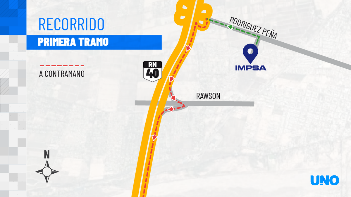 Luego se transitará un tramo en contramano hasta el puente Paso, en Luján de Cuyo, y se tomarán las colectoras de salida en los puentes Rawson y Paso.
