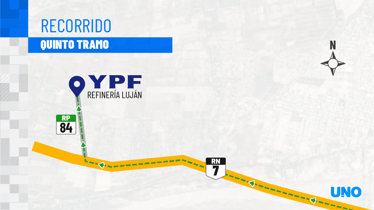 En ese tramo se van a realizar cortes de tránsito y desvíos a la altura del puente Quintana, en la ruta 40. El traslado continuará desde la intersección de la ruta 7 y la 40 hacia la refinería de YPF y alta montaña.