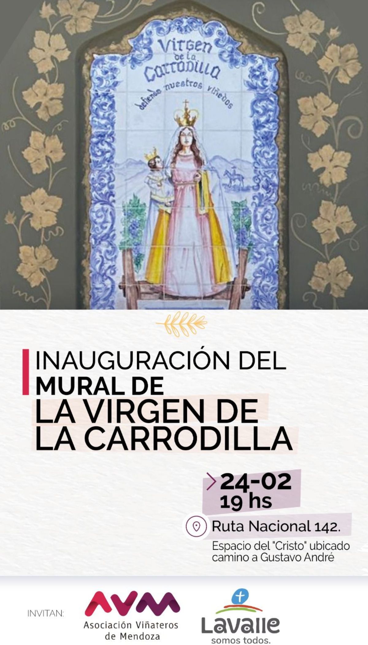 Los mendocinos en general, y en particular los que viven del cultivo de la tierra, tienen puesta su fe en una de las advocaciones de la virgen María, la Virgen de la Carrodilla, traída por el inmigrante aragonés Antonio Solanilla en el siglo XVII. Por eso los viñateros le rinden culto y veneración, y la entidad que los representa, la Asociación de Viñateros, inauguró el segundo mural de la Patrona de los Viñedos, esta vez, en Lavalle.