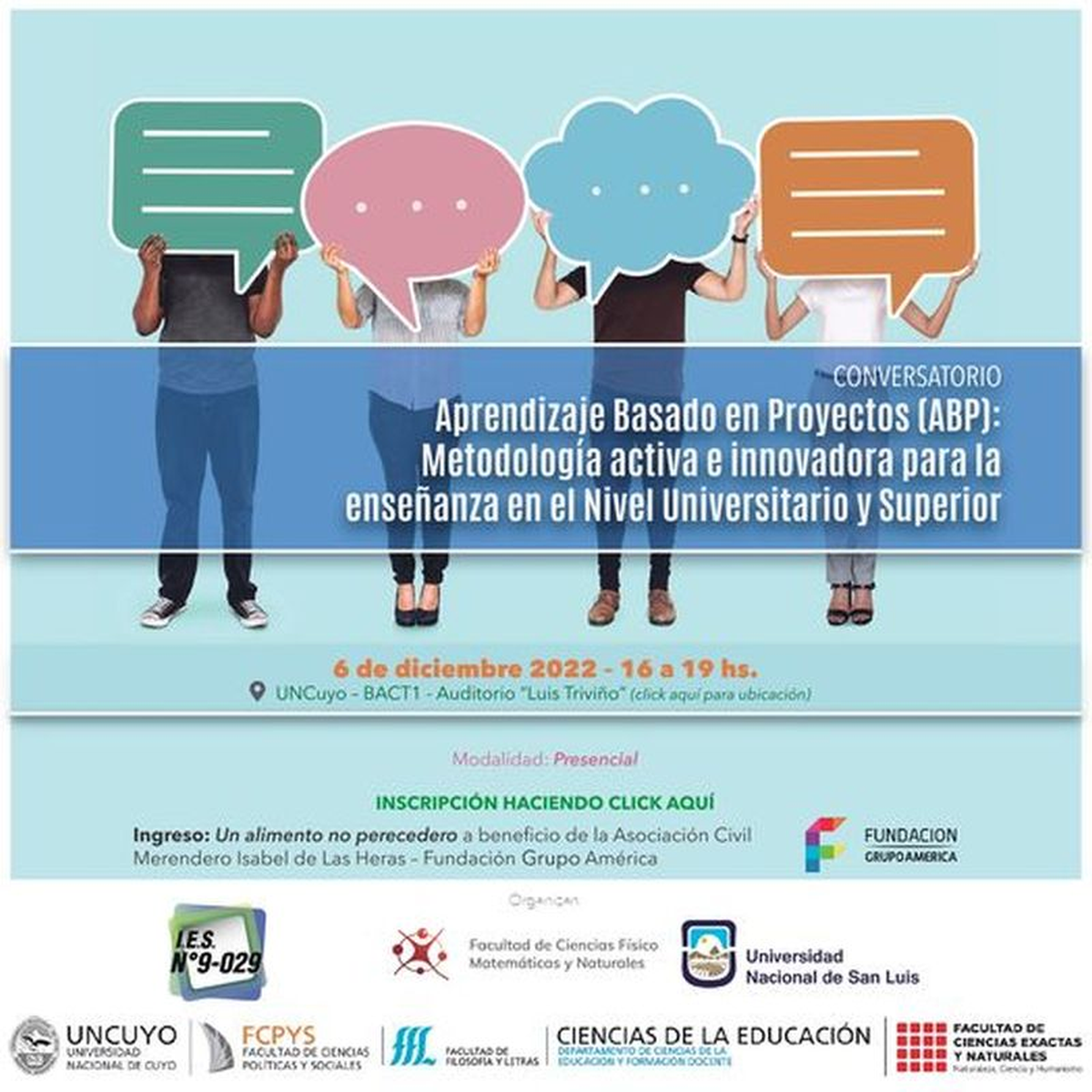Se viene el conversatorio de Aprendizaje basado en proyectos (ABP), metodología activa e innovadora para la enseñanza en el nivel universitario y superior. Se trata de una jornada dirigida a docentes y estudiantes interesados en las metodologías activas.