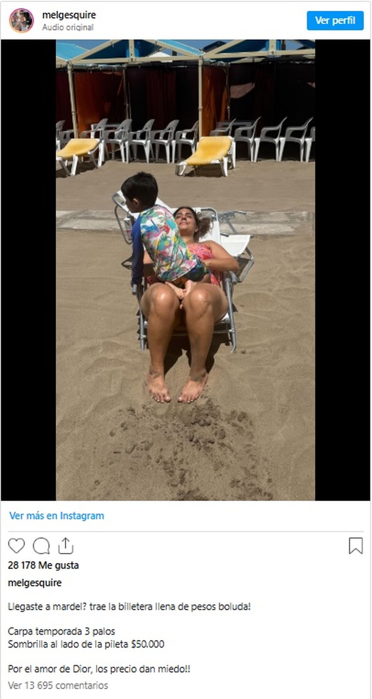 “Finalmente me cobraron los 50 mil pesos. El problema es que este cliente hace 40 años paga toda la temporada, dejame la sombrilla que tengo las dos criaturas. Nosotros amamos Mar del Plata, esto no es una queja y el año que viene vamos a volver. Pero lo que yo digo es que Argentina está cara porque hay cosas que tienen el mismo valor que Los Ángeles”, protestó la turista afectada.