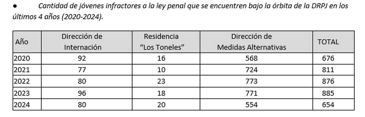 Además, otro de los aspectos fuertes de las estadísticas y del análisis del fenómeno, es que Mendoza mantiene la cantidad de chicos en conflicto con la Ley.