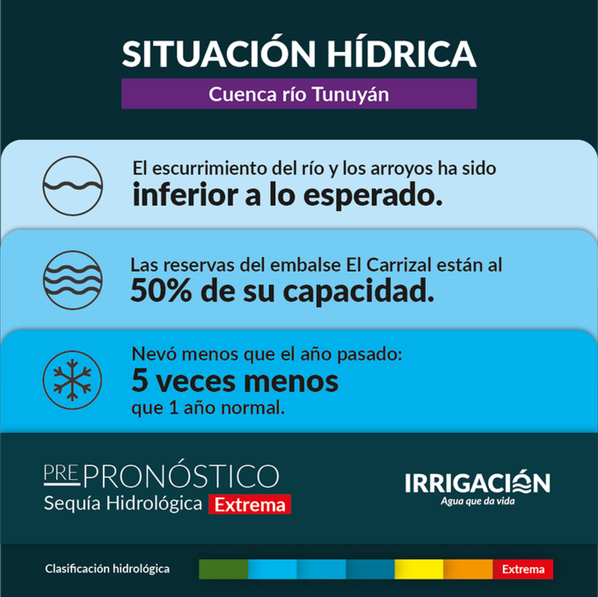 El Departamento General de Irrigación presentará el 13 de octubre el pronóstico de escurrimientos para la temporada 2022-2023; pero previamente difundió algunos anticipos de lo que muestran los estudios sobre la sequía en Mendoza.