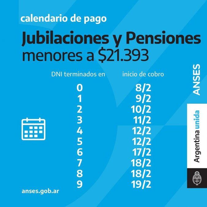 El calendario de pago de jubilados se está llevando a cabo desde el lunes 8 de febrero. Hoy cobran aquellos que tienen haberes que no superan los $21.393 y tienen DNI terminado en 3.