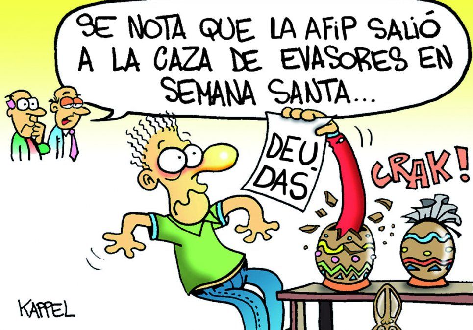 Inicio Sociedad El humor de Kappel El humor de Kappel 16 de abril de 2017 - 09:32 La AFIP no descansa ni en Semana Santa Por UNO Temas relacionados: El humor de Kappel Humor las más leídas Mundo El mayor fabricante de electrodomésticos cerró su fábrica en Argentina y decidió que otro país de la región absorba todo Por Valentina Araya ¡No te olvides! Banco Nación supermercados regresa este miércoles con MODO para ahorrar hasta $72.000 Ciberdelitos Desarticularon en San Rafael una red de estafas con tarjetas que afectó a 800 personas en el país Por Pablo Abihaggle Recambio legislativo En la última sesión, el Senado retocó las condiciones para concesionar el autódromo fantasma Por Analía Doña Lo que se lee ahora Sociedad El mayor fabricante de electrodomésticos cerró su fábrica en Argentina y decidió que otro país de la región absorba todo Te puede interesar Debate Salud mental y bullying, en el centro del II Congreso de Niñez y Adolescencia en Mendoza Mundo China prueba el primer vehículo que vuela 6 metros sobre el agua a 200 km/h con tecnología cuántica Leyendas Sangre, traición y una profecía: la oscura historia detrás del Reloj Astronómico de Praga