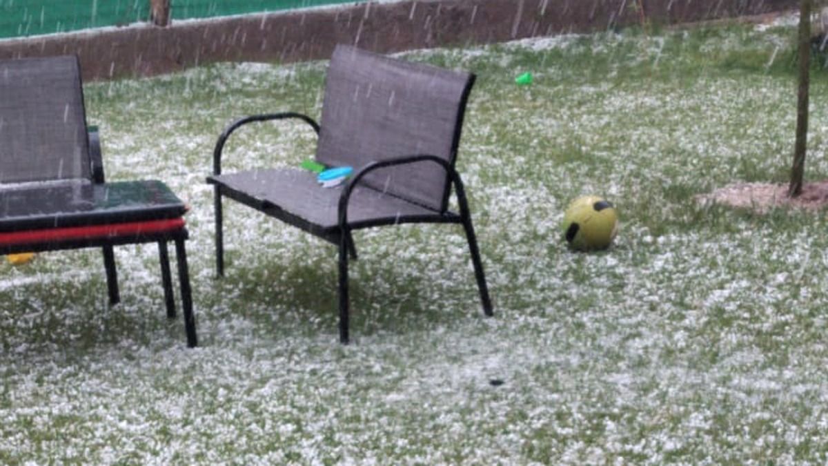 Para lo que resta de la jornada, se esperan tormentas y lluvias aisladas y un descenso de la temperatura con una máxima de 23 grados y altos índices de humedad. De hecho, en Luján de Cuyo comenzó a llover y granizar a media mañana, primero leve y luego con piedras de mayor tamaño (imagen de Carrodilla).
