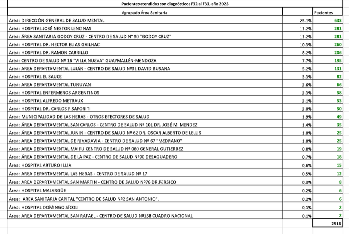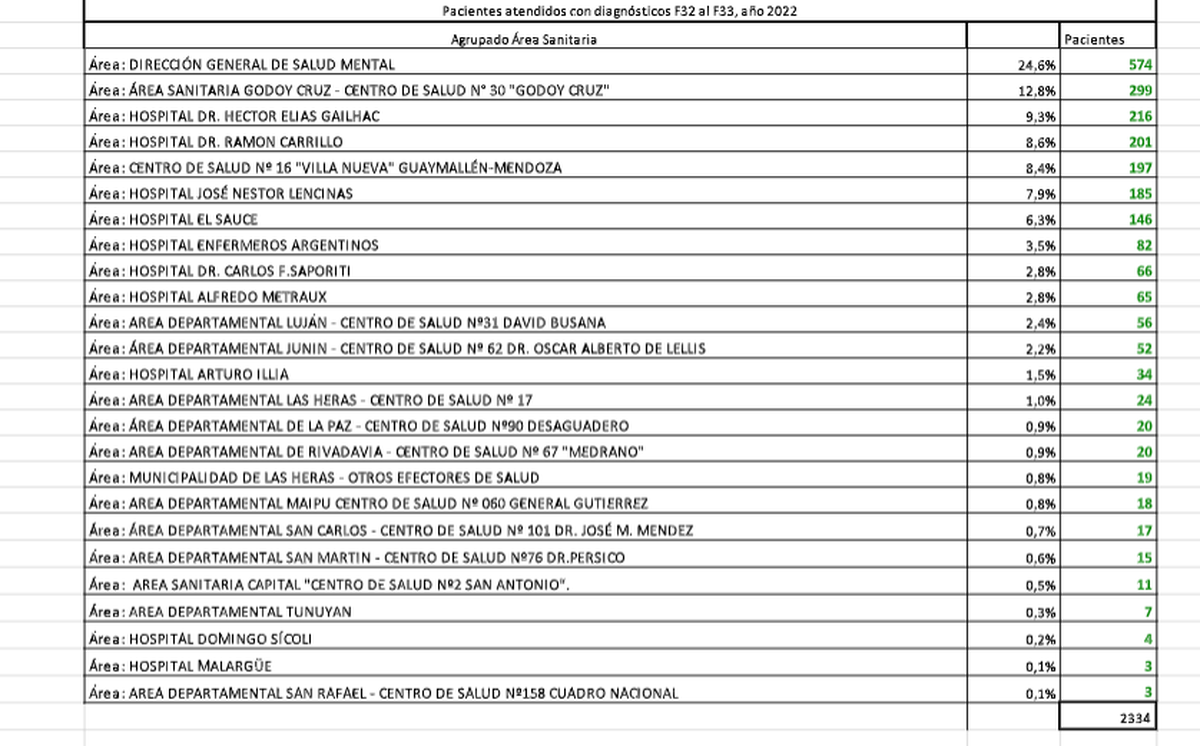 Datos del Observatorio de Salud Mental arrojan que entre 2022 y 2023, casi 5.000 personas fueron asistidas en parte de los hospitales públicos de Mendoza por depresión, que quedan registrados en la plataforma del Sistema de Atención Sanitaria de Mendoza.