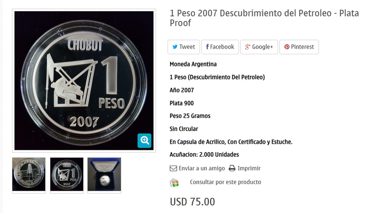 También se puede ver en la moneda de 1 peso que dice "REPÚBLICA ARGENTINA" y "DESCUBRIMIENTO DEL PETRÓLEO".