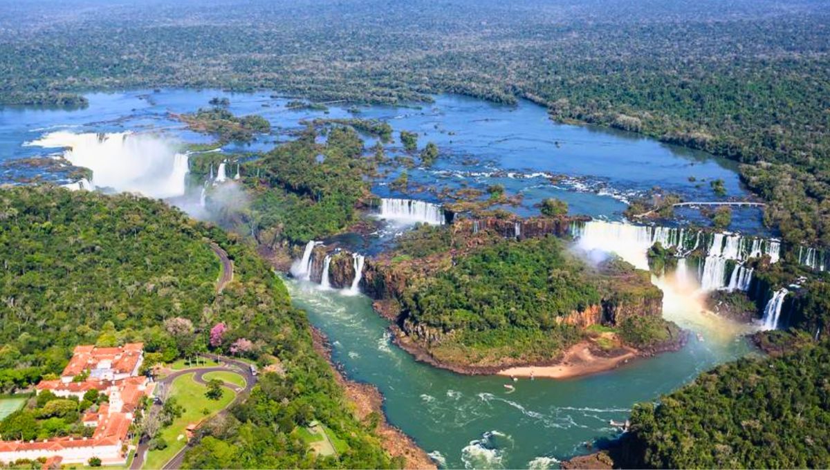 La ciudad de América del Sur que ofrece esta vista privilegiada es Puerto Iguazú, en Argentina, ubicada en la provincia de Misiones. A tan solo unos metros se encuentra Foz do Iguaçu, en Brasil, y al otro lado del río, Ciudad del Este, en Paraguay.