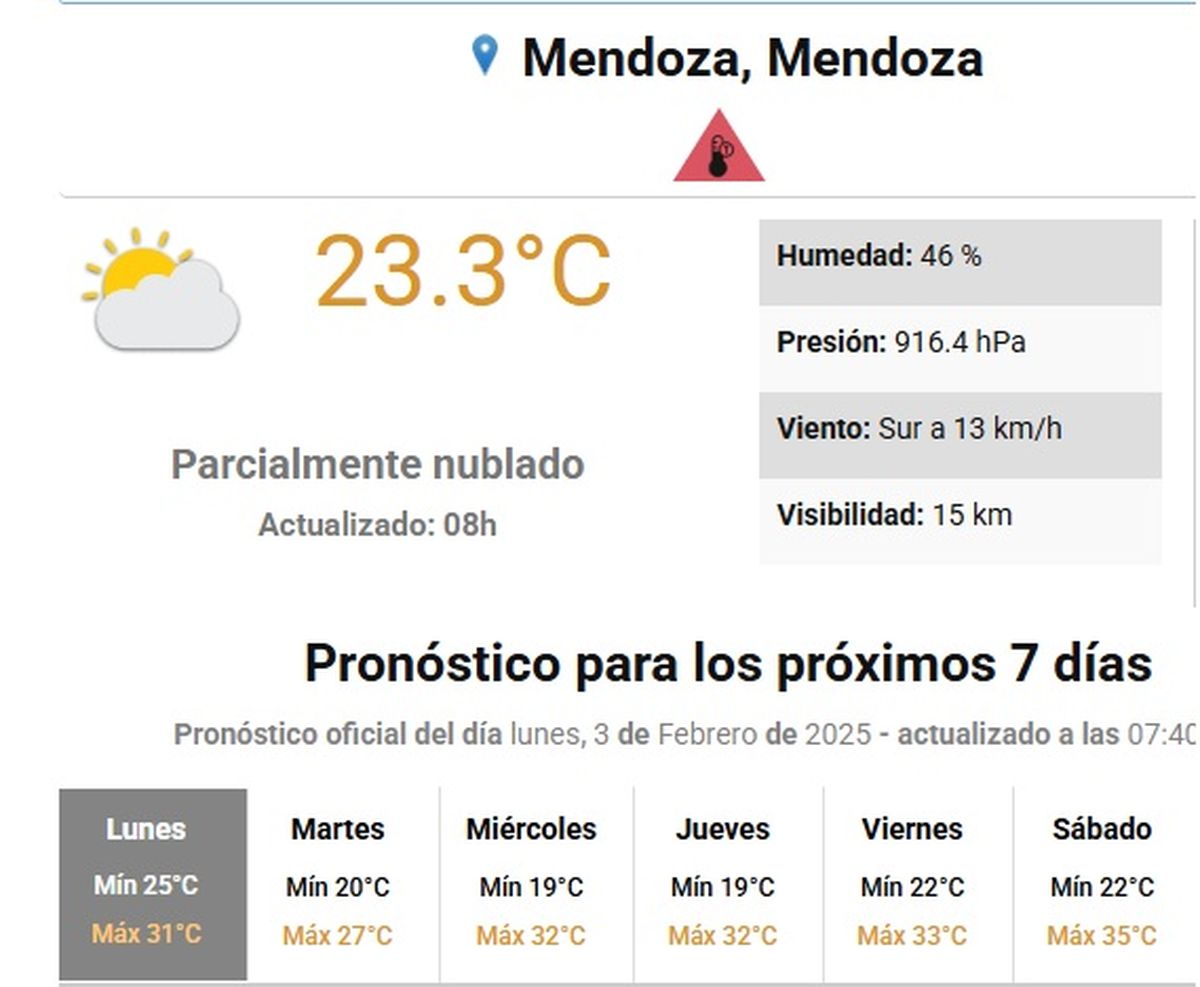 En Mendoza se han experimentado varios días de calor, con la llegada de febrero un alerta roja por temperaturas extremadamente altas llega solo a la ciudad de Mendoza. A continuación te contaremos como irá variando la temperatura y cómo debes actuar frente a este calor.
