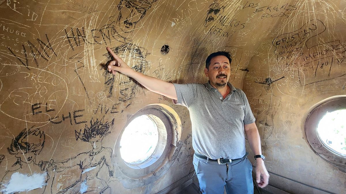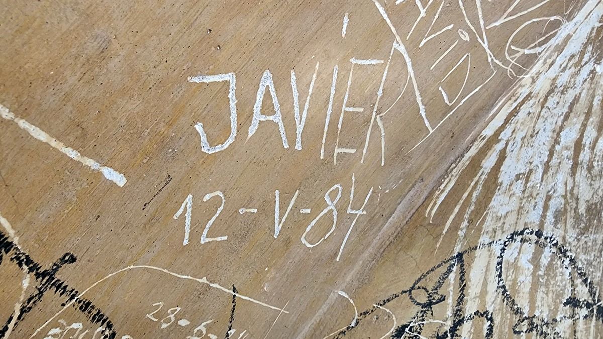 Lo más extraño de toda esa pequeña habitación cuya única iluminación es la que ingresa por las ventanas en forma de ojo de buey es tratar de entender cómo hicieron aquellos jóvenes para escribir hasta en el último sector de los techos curvos, más si se tiene en cuenta que en el centro está el hueco de las escaleras.