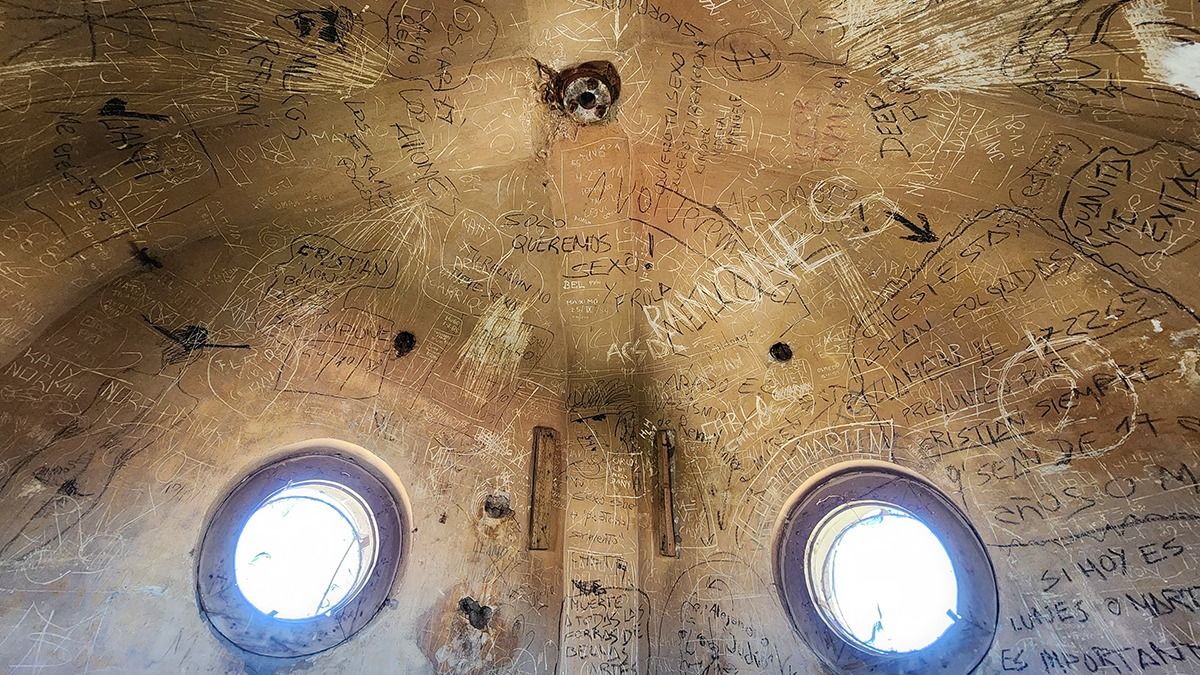 La cúpula está plagada hasta el último rincón de escritos, dibujos, invitaciones de los tiempos en los que terminaba el ocultamiento y la represión de la dictadura y comenzaba la primavera democrática, con todo su desenfado. Prueba de esto son las numerosas referencias al deseo y a la apertura sexual que hay plasmados en esos muros.