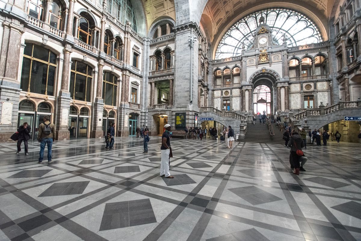 Antwerpen-Centraal es una terminal ferroviaria situada en Amberes, región Flamenca, en Bélgica. También conocida como Spoorwegkathedraal o "templo de mármol", tiene una gran cúpula, escalinatas, vidrieras que la hacen parecer un palacio.