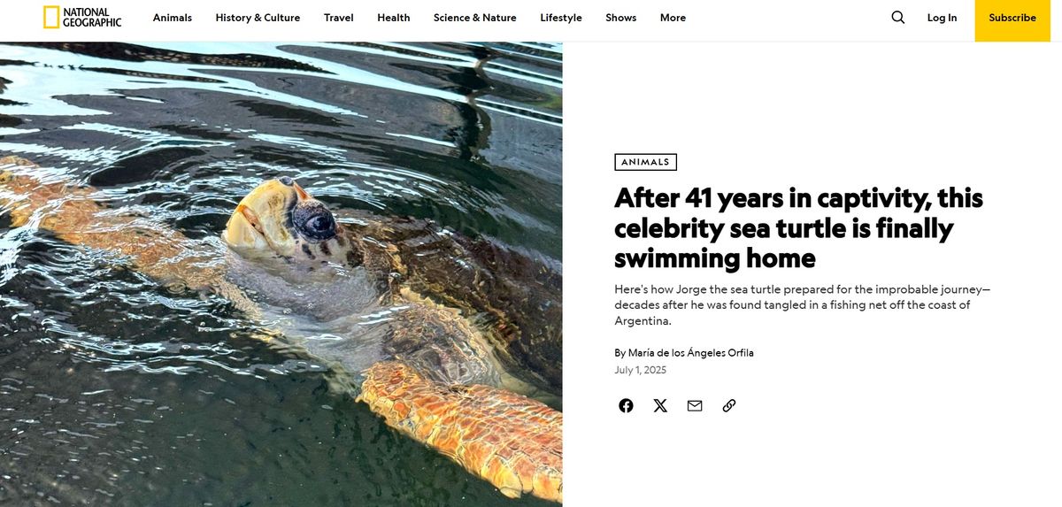 La historia del tortugo Jorge llegó a National Geographic y causa sensación internacional