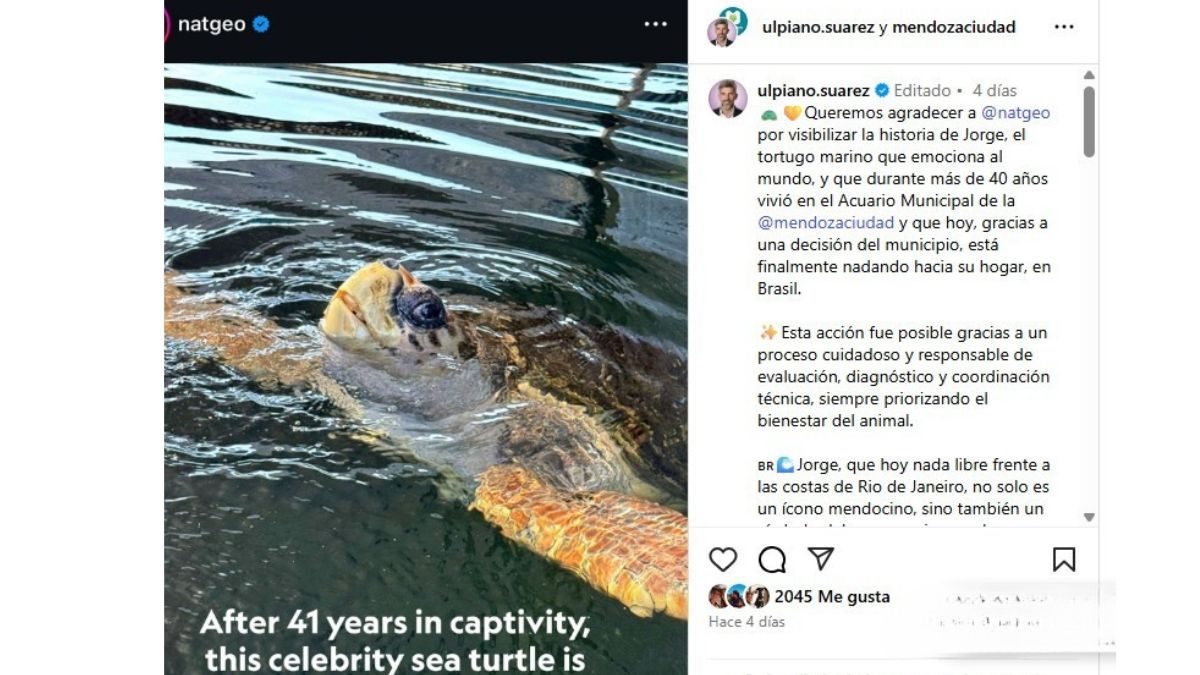 El intendente de la Ciudad, Ulpiano Suarez, agradeció a través de sus redes sociales el reconocimiento y la visibilidad que la revista National Gegraphic le dio a la historia de Jorge, el tortugo que siempre será parte de la historia del municipio.