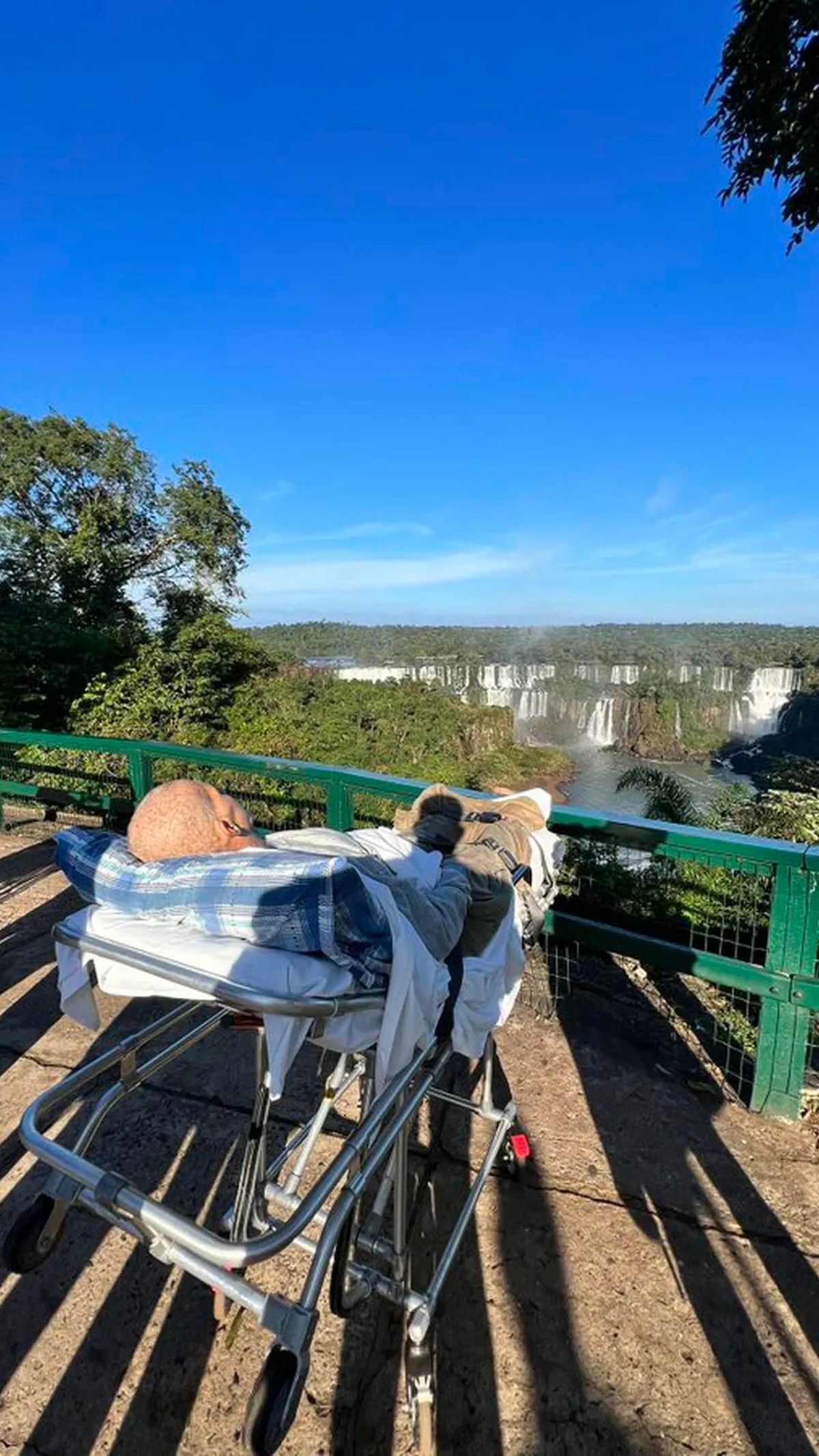 Valmiro fue trasladado hasta el mirador de las Cataratas en su propia camilla. "Estaba ansioso. Aunque las había visto en la televisión, en persona es mucho más hermoso”, aseguró Valmiro.