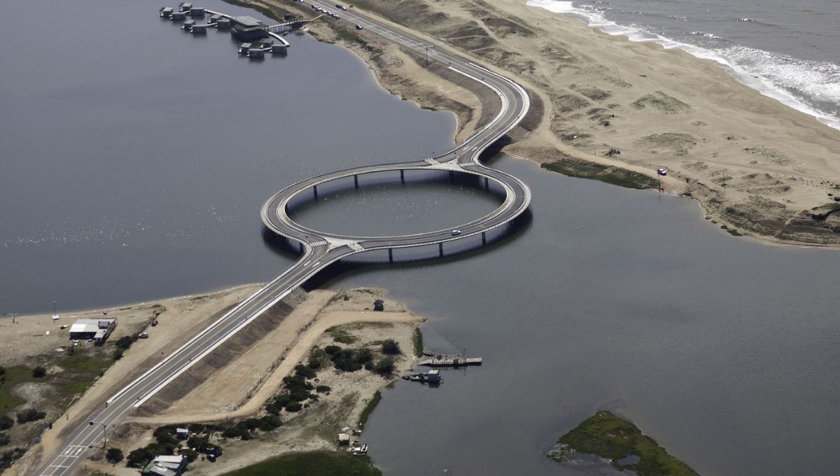 Se trata de la construcción Puente Laguna Garzón, una estructura única que conecta los departamentos de Maldonado y Rocha, se encuentra en el límite entre dos playas. Inaugurado en 2015, este puente no solo facilita el tránsito de vehículos y peatones, sino que también se ha convertido en un ícono arquitectónico por su forma circular, una característica poco común en este tipo de construcciones.
