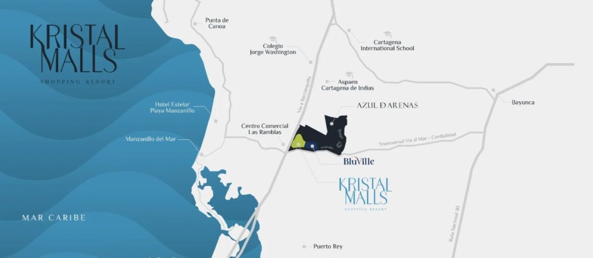 La constructora Arquitectura y Concreto reveló que en el primer semestre de 2025 colocará la primera piedra de KristalMalls Cartagena, es el primer Shopping Resort del país, ubicado en Azul de Arenas, al norte de Cartagena. Su gran atractivo, la espectacular Crystal Lagoons, lo convierte en un destino imperdible para quienes visitan la ciudad.