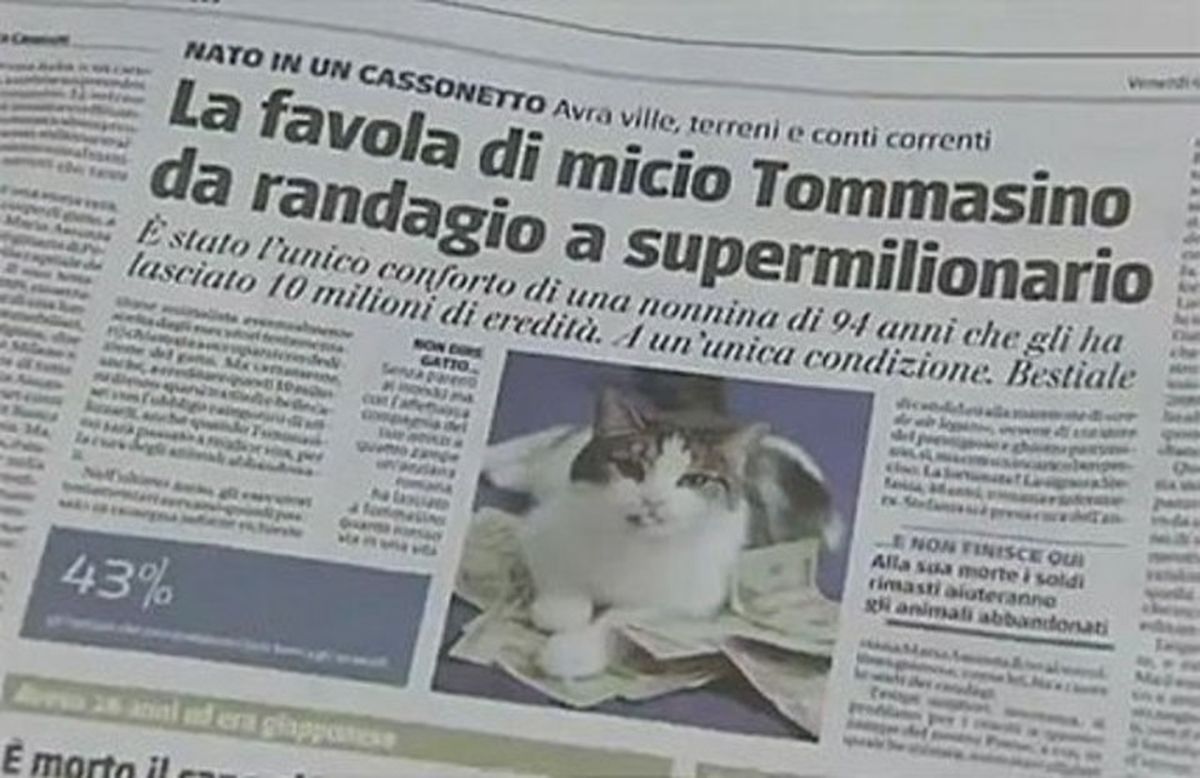Las personas solitarias suelen adoptar mascotas como perros y gatos para sentir su afecto incondicional y compañía constante. Fue lo que hizo María Assunta, una mujer italiana de la tercera edad que ostentaba una jugosa fortuna y tomó la decisión de rescatar de la calle a Tomassino.