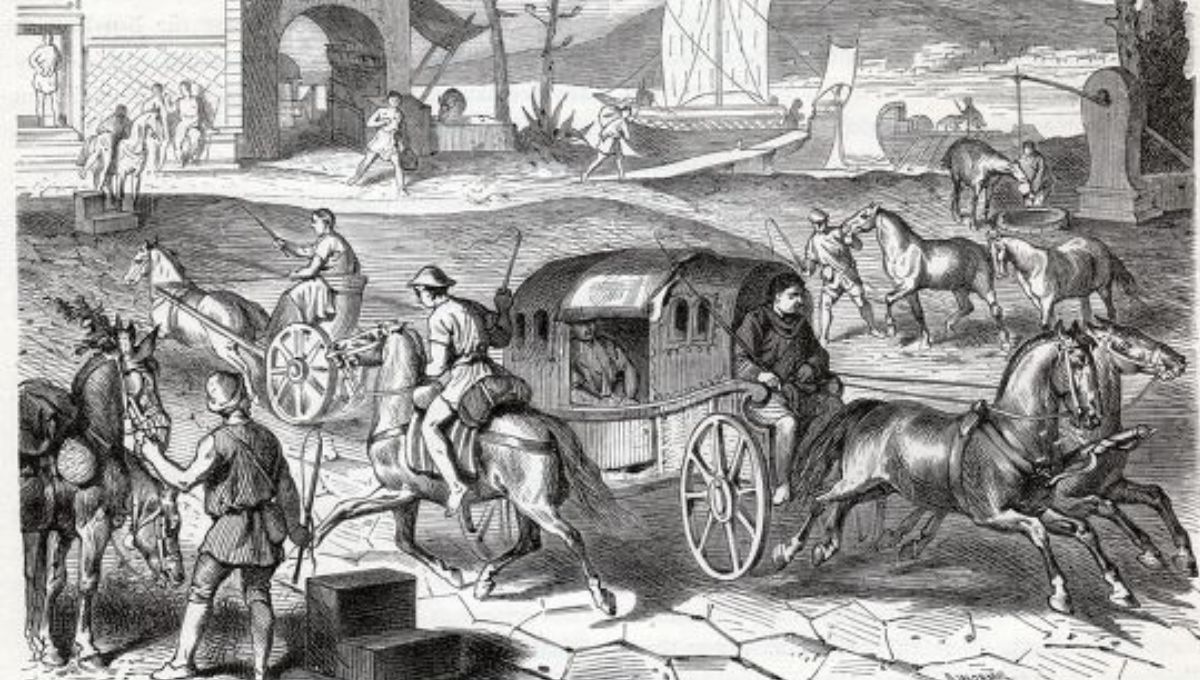 El cursus publicus, el sistema de correos imperiales del imperio Romano. Con estaciones de relevo dispuestas a lo largo de las grandes vías, caballos frescos, alojamientos, mensajeros entrenados y protocolos rigurosos, lograba algo revolucionario: acortar el tiempo. Y al acortar el tiempo, acortaba también las distancias y la incertidumbre, dos enemigos que ningún imperio podía permitirse.