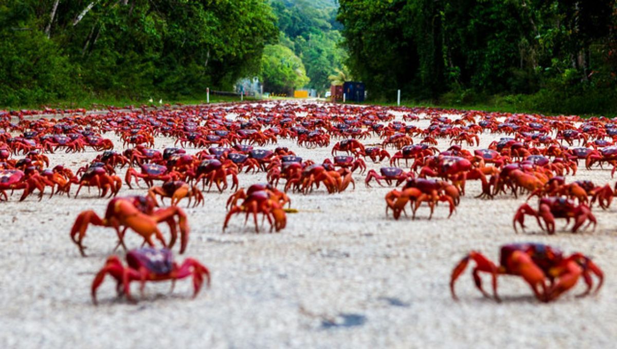 Cada año, entre octubre y diciembre, millones de cangrejos rojos abandonan el bosque y avanzan hacia el mar para reproducirse. El fenómeno es tan masivo que obliga a cerrar rutas, redirigir el tránsito y adaptar la vida cotidiana de quienes viven allí. No es una metáfora. La isla se mueve literalmente al ritmo de esta migración.