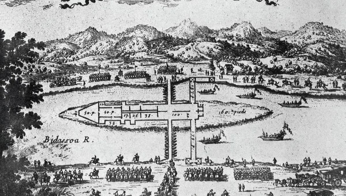 Según la página oficial Traveler la verdad es que tampoco hay mucho que ver. Esta isla solo cuenta con árboles y un monolito que recuerda que en este lugar se firmó en 1656 el Tratado de Paz de los Pirineos que ponía fin a la larga guerra entre España y Francia.