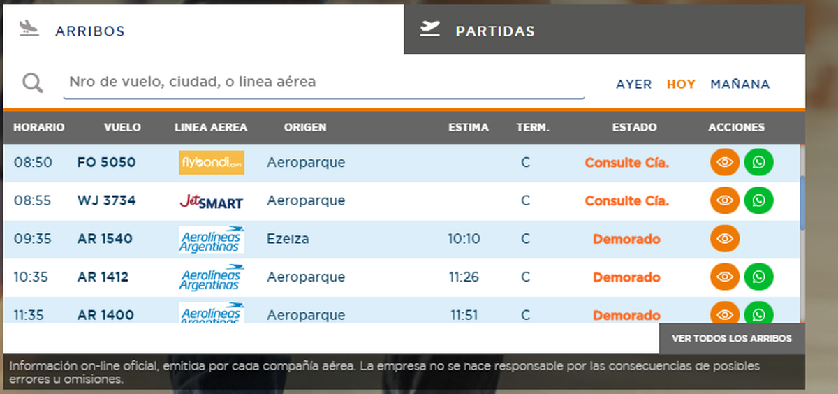 En el Aeropuerto de Mendoza las compañías reconocieron las demoras, ya que no salieron los vuelos de Buenos Aires. En el Aeroparque Jorge Newbery y en el Aeropuerto Internacional de Ezeiza no hay despegues hasta nuevo aviso, según informaron fuentes de AA 2000.