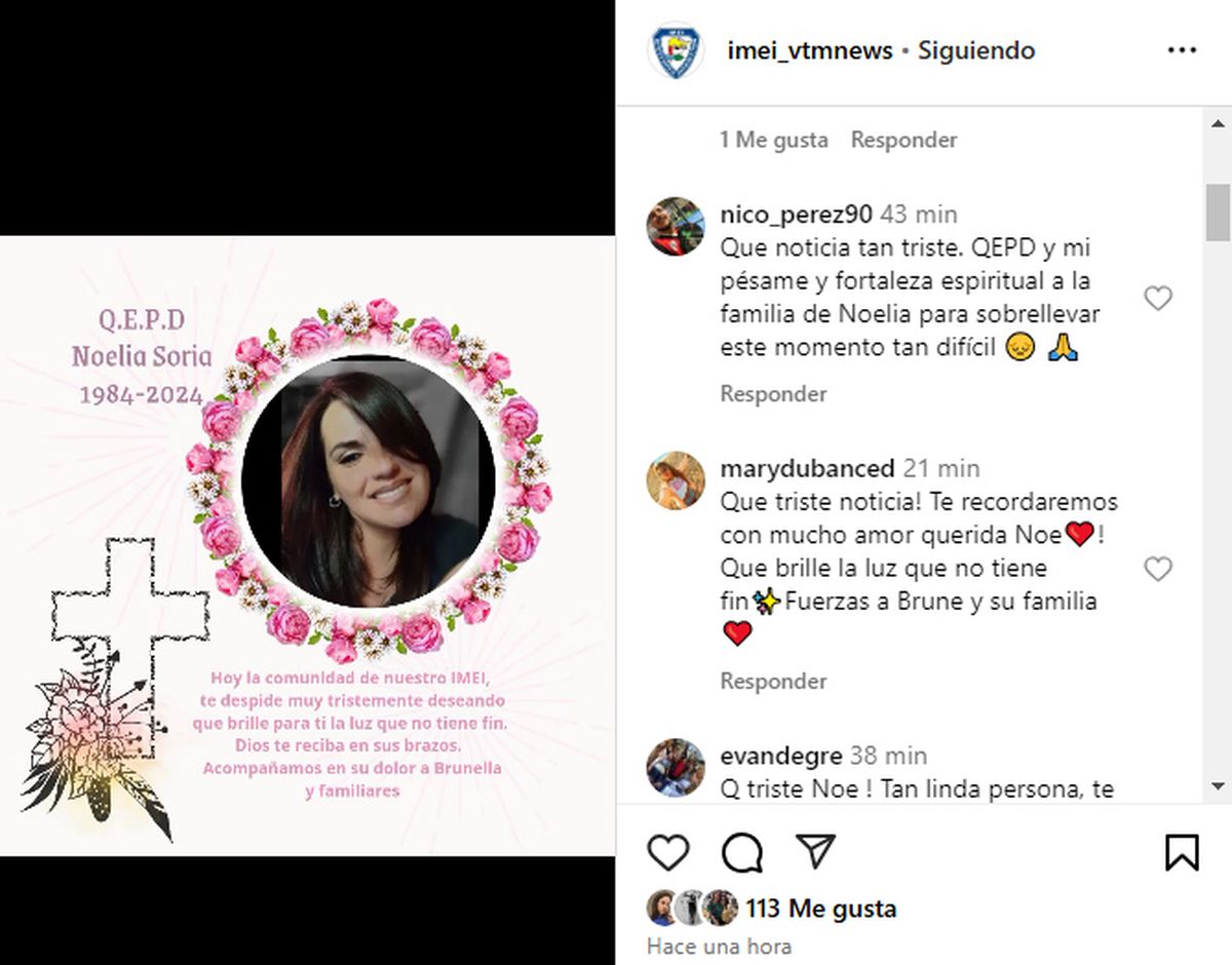 La ingrata noticia ha dejado una enorme tristeza entre los integrantes de la comunidad educativa, que la homenajeó a través de su cuenta de Instagram, donde muchas personas dejan sus condolencias.