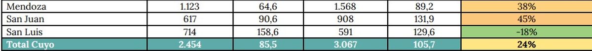 - Mayores aumentos: Neuquén, Entre Ríos y Tierra del Fuego.