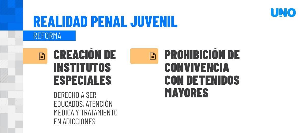 También establece la creación de institutos especiales para que reciban educación, atención y tratamiento en adicciones (algo que ya se hace en Mendoza) y la prohibición a vivir con detenidos mayores de edad.