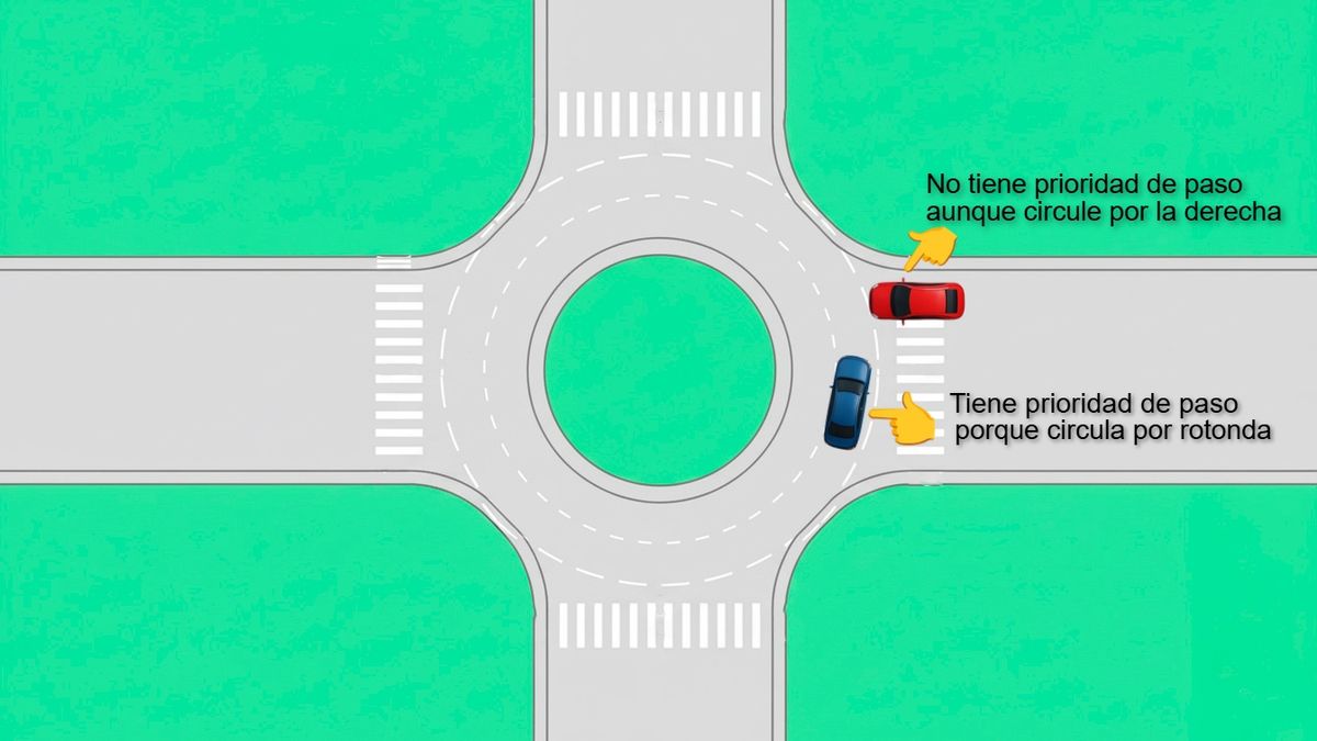 Caso 7: en las rotondas, rigen reglas específicas, el conductor que circula dentro o intenta salir de la rotonda tiene prioridad sobre aquel que intenta ingresar, incluso si este último se encuentra a la derecha.