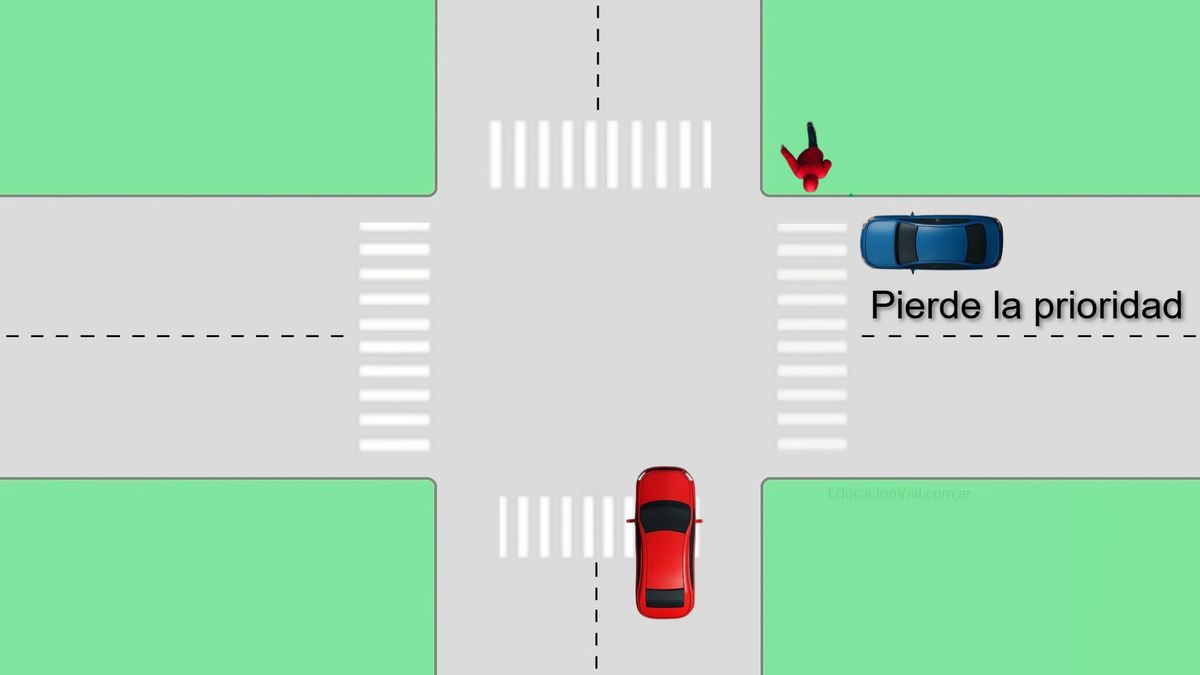 Caso 2: si la señalización vial horizontal o vertical indica expresamente lo contrario a la prioridad de paso de quien circula por la derecha, justamente el vehículo que circula por la derecha debe detener su marcha y ceder la prioridad de paso. Un ejemplo claro es la señal de “Ceda el Paso” o “Pare” (que es el equivalente a un semáforo en rojo).