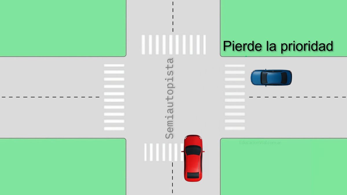 O sea, según la legislación nacional entre una avenida y una calle la prioridad sigue siendo del vehículo que circula desde la derecha. Pero cuando nos encontramos cruzando una semiautopista esta prioridad se pierde.