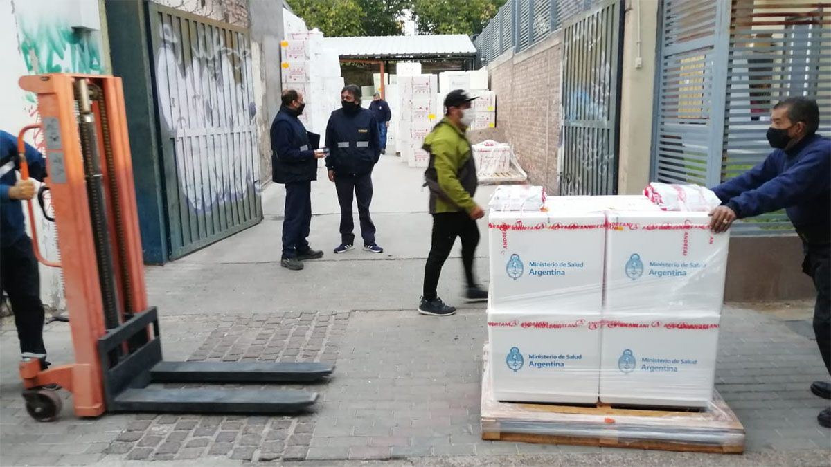 Del total de lo llegado, 650.400 fueron distribuidas para el interior del país y Mendoza recibió 29.400 dosis en la mañana de este lunes.