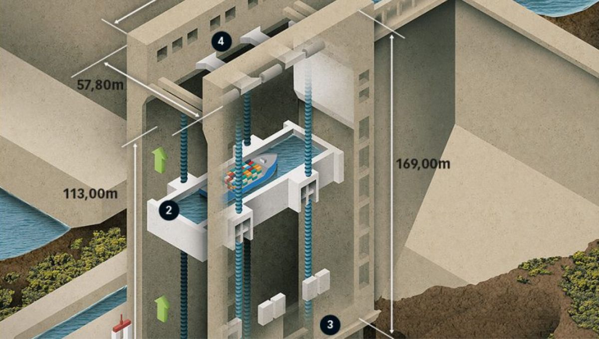 El mecanismo funciona como un ascensor vertical: los barcos entran en una gigantesca cámara de acero llena de agua, y luego todo el sistema asciende lentamente, impulsado por contrapesos y motores hidráulicos. En cuestión de minutos, lo que antes habría tomado horas ,o incluso días, se convierte en un recorrido casi silencioso, donde la fuerza del hombre se une con la de la naturaleza.