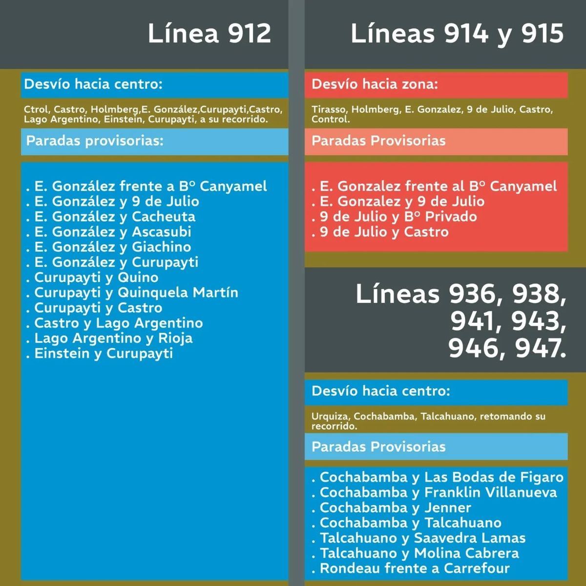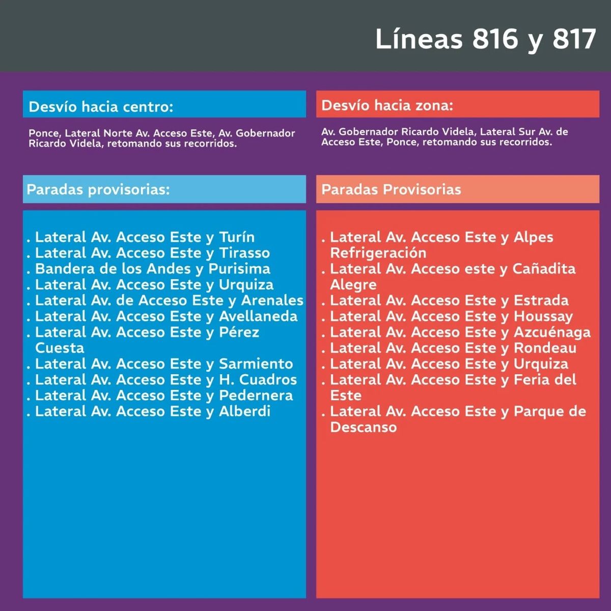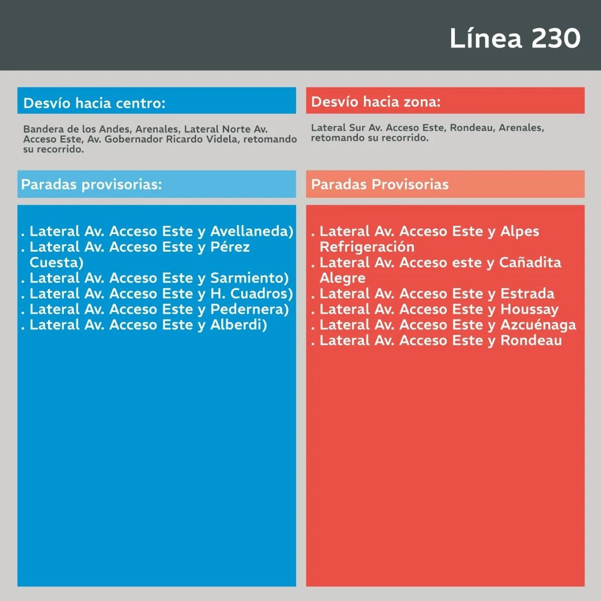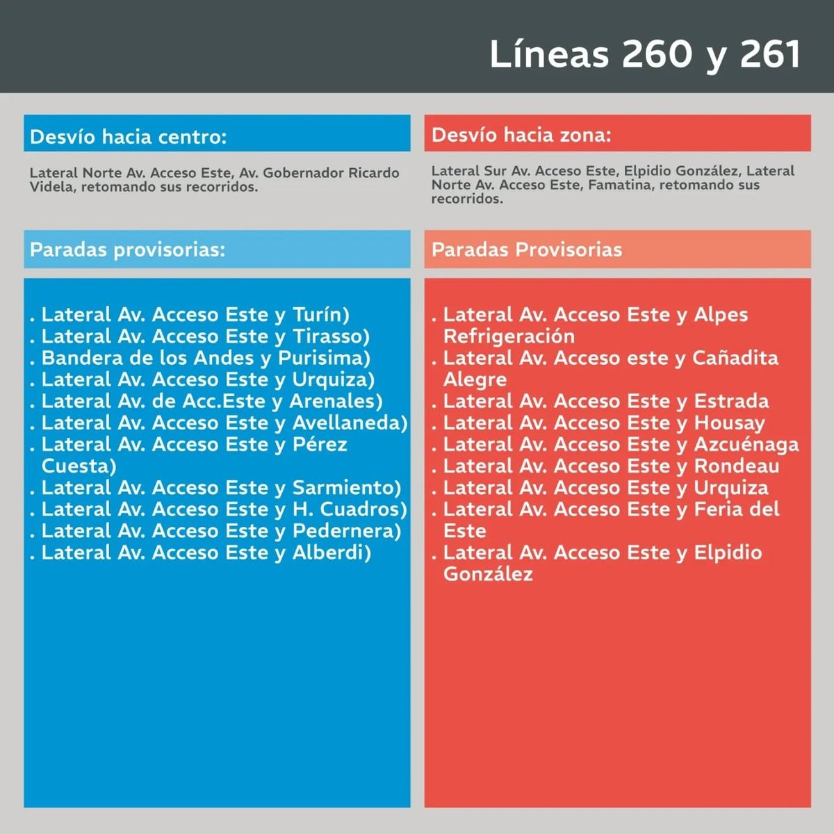 A través de sus redes, Mendotran publicó las líneas que tendrán otro camino desde el lunes en Guaymallén por el cambio de sentido en las laterales del Acceso Este.
