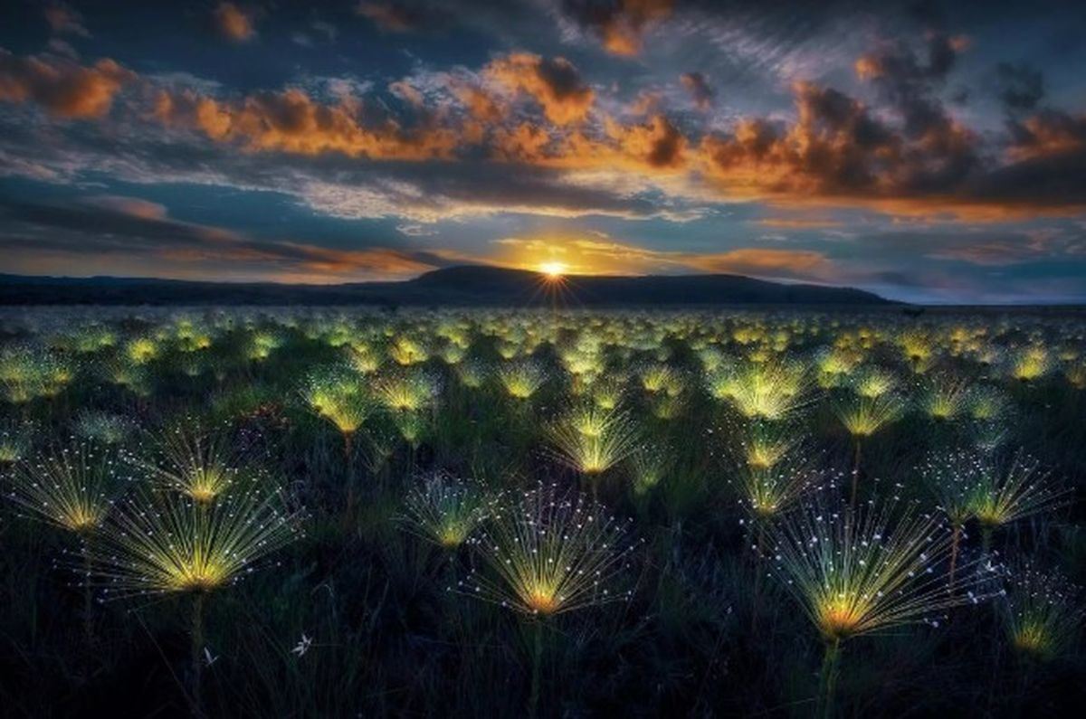 Marcio Esteves Cabral, nacido en Brasil, expresó: "Cuando la luz del amanecer adorna las mesetas de Veadeiros, un impresionante campo de Paepalanthus refleja los rayos del sol, creando un espectáculo de luminiscencia vegetal. Capté la armonía entre el cielo y estas plantas únicas a contraluz".
