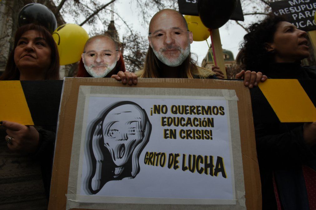 Los manifestantes protestaban contra la decisión del Gobierno provincial de revisar y modificar parte del financiamiento que reciben los institutos de educación superior (IES), en los que se dictan profesorados de diversas materias.