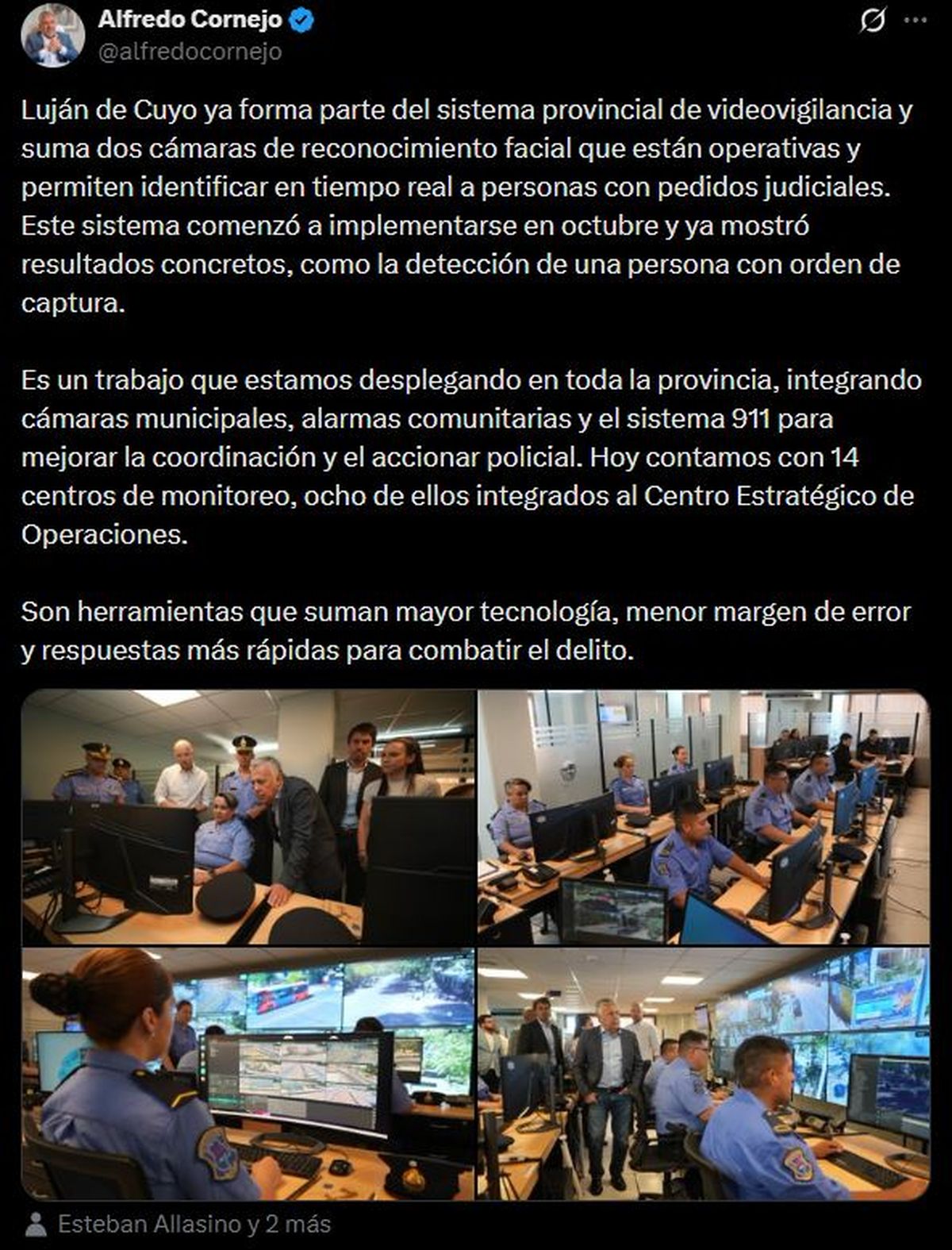Luján de Cuyo inauguró un centro de monitoreo policial y Cornejo destacó la unificación de recursos