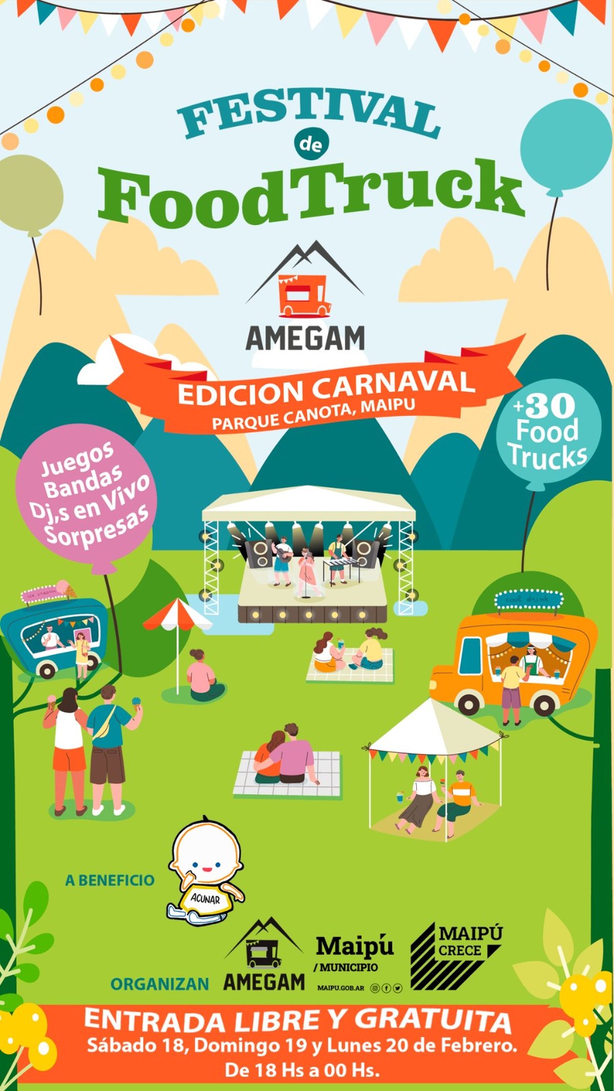 La Municipalidad de Maipú junto a AMEGAM; (Asociación Mendocina de Gastronomía Móvil) organizan los Festejos del Carnaval desde el sábado hasta el lunes en el Paseo Canota ubicado en Luzuriaga.